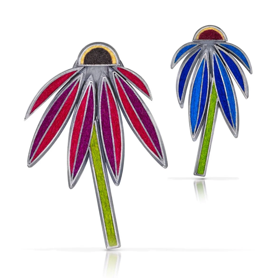 Fabricated oxidized sterling silver jewelry set with wool felt. — Michele Friedman